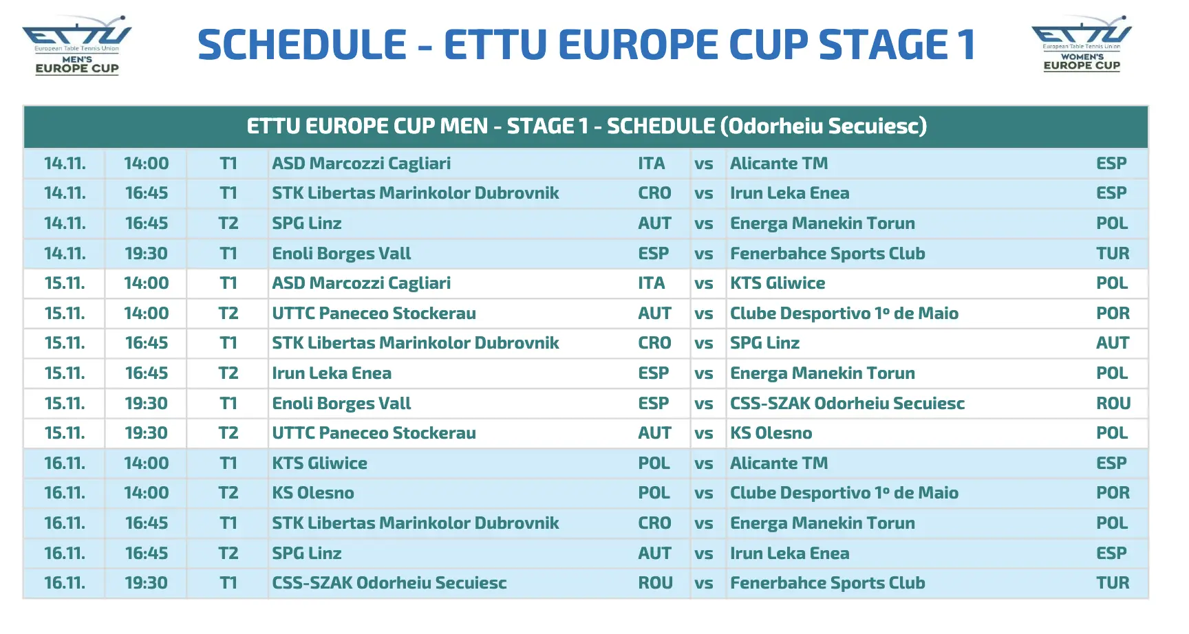 Modalidade: 🏓 Ténis de Mesa – Europe Cup Men