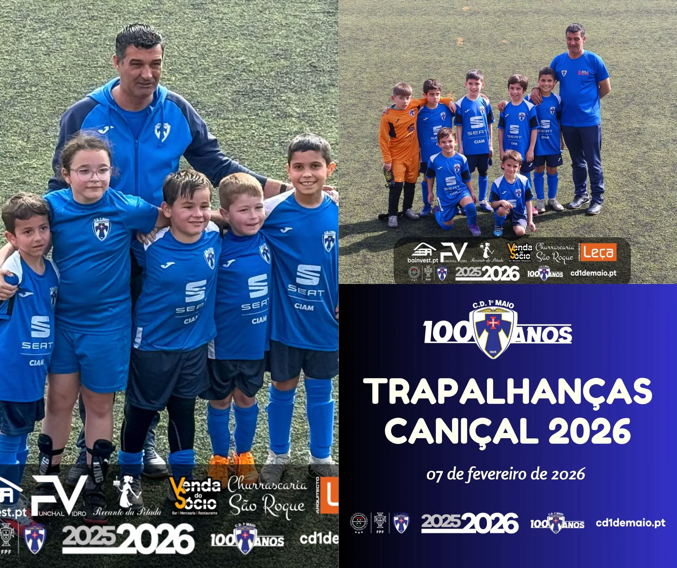 As Escolinhas de Futebol do CD 1º de Maio viveram mais um fim de semana especial nas tradicionais Concentrações de Trapalhanças, realizadas no Caniçal. Os escalões Sub-8 e Sub-9 marcaram presença com o entusiasmo e a energia que caracterizam os mais jovens talentos do nosso clube. Foram cinco jogos para cada equipa, ocasiões únicas onde o resultado deixou de ser o centro das atenções, dando lugar à aprendizagem, à superação e à magia de jogar pelo prazer de jogar.