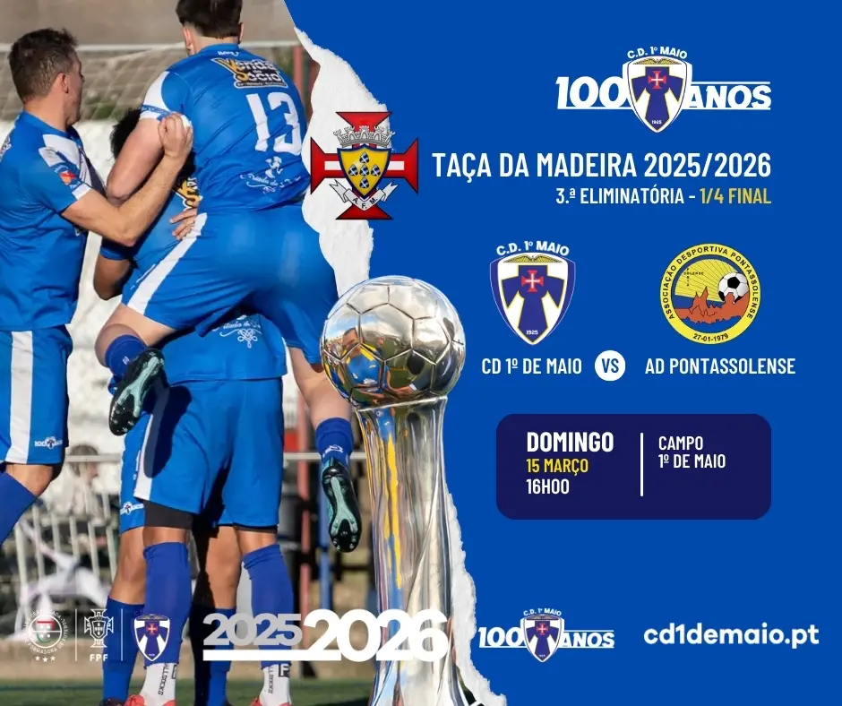O CD 1º de Maio prepara-se para um dos desafios mais aguardados da época: a receção à AD Pontassolense, a contar para a 3ª Eliminatória (1/4 de Final) da Taça da Madeira, no próximo dia 15 de março, às 16h00, no Campo Adelino Rodrigues, no Funchal.