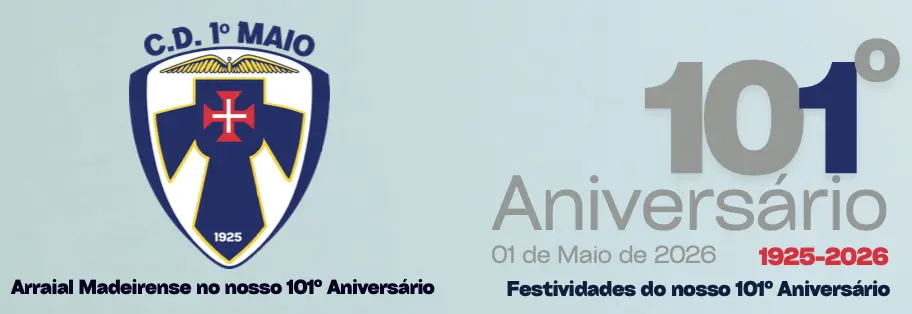 O Clube Desportivo 1.º de Maio prepara-se para viver um marco histórico. No dia 1 de maio de 2026, o nosso clube celebra 101 anos de vida, uma marca que orgulha cada adepto e que merece uma celebração à altura da nossa identidade.