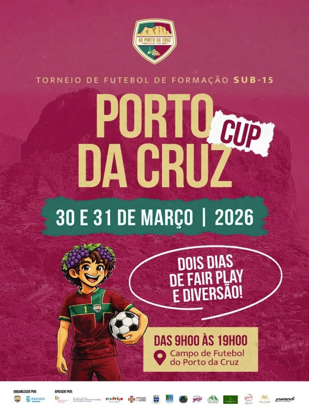 Cartaz do 1º Torneio Porto da Cruz CUP 2026